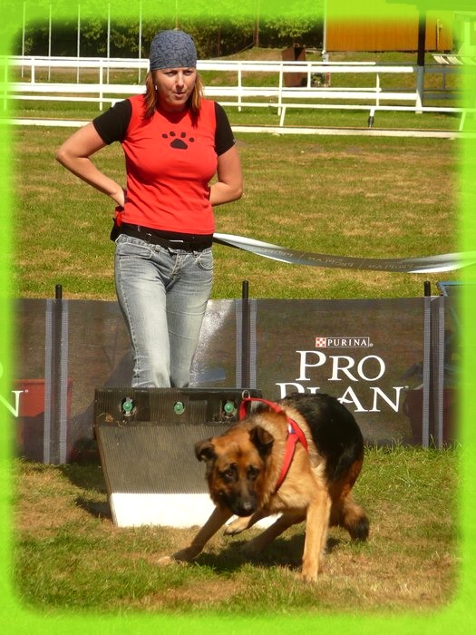 Sindy agility nesmírně baví, dokonce je i moc šikovná, ovšem jen když jsem já v klidu, jakmile se rozběhnu s ní, radostí kosí všechno, co jí stojí v cestě, jen aby byla rychlejší než já. Vzhledem k tomu, že mi jí děda z chalupy „půjčuje“ jen na omezenou dobu, a dlouhou chvíli trvá, než se Sindy z nezbedného rozmazleného psíka přetransformuje na mou vlnu, dávají nám tréninky opravdu zabrat, ale jak se říká, těžko na cvičišti, lehko na bojišti, tak se třeste, pokud se někdy rozhodneme závodit…:-)