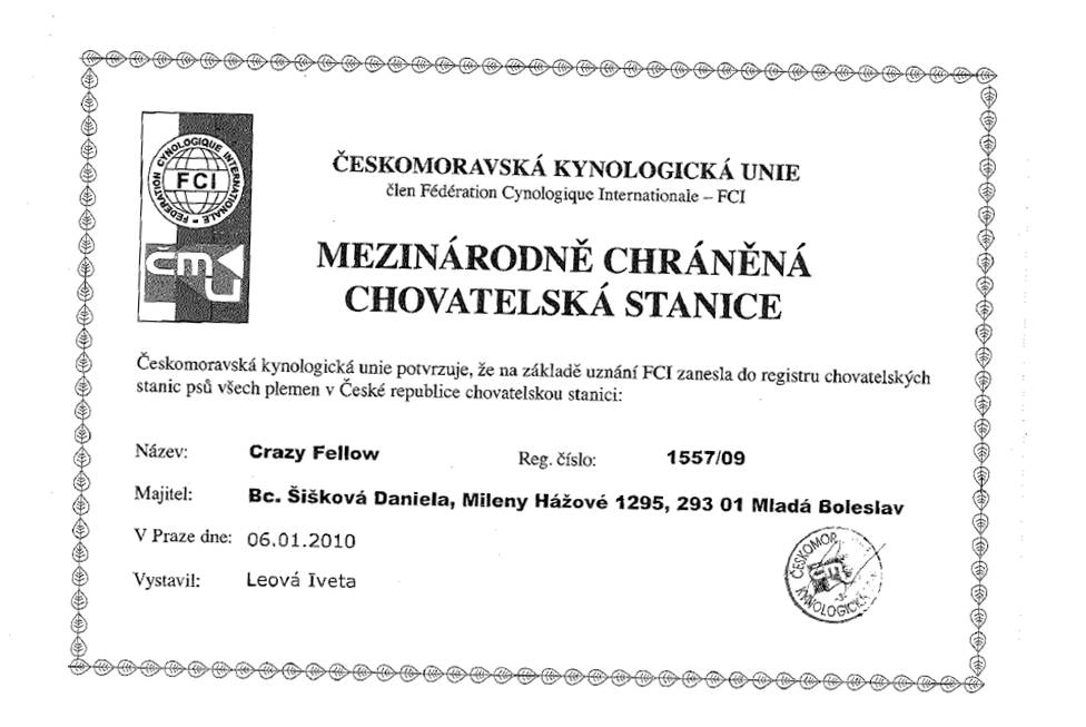 6.1.2010 máme mezinárodně chráněný název chovatelské stanice