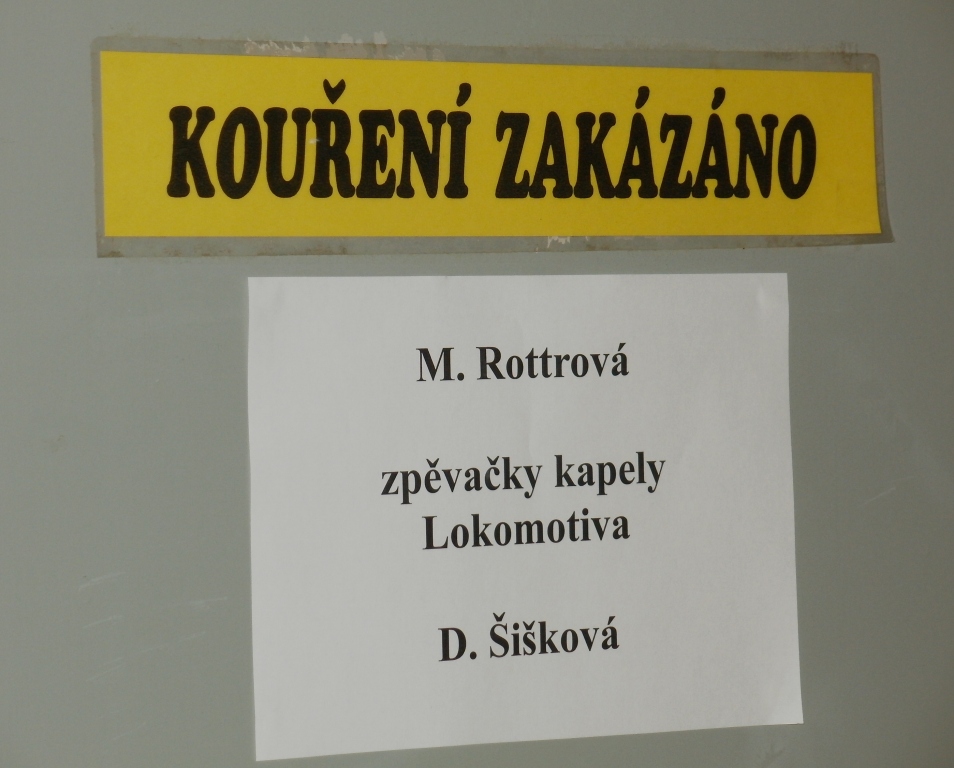 2) po příchodu do zázemí - šaten mě šokoval nápis na naší šatně: "M. Rottrová, zpěvačky skupiny Lokomotiva, D. Šišková" ... celebrity :-)... ovšem nakonec jsme s Marií Rottrovou (mimochodem mou největší pěveckou hvězdou!!!) v šatně nebyly, bydlely jsme ve větší šatně vedle... ale podpis od Marušky i s věnováním mám a pár milých vět jsme spolu také prohodily...juuu :-)