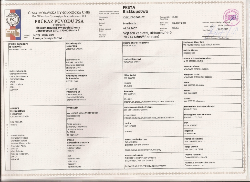Výstavovaní Freye jde. V kruhu působí velmi sebejistě a i ve výstavním postoji dokáže setrvat tak dlouho, jak je třeba. Co si u ní rozhodčí velmi cení, je její krásný ladný pohyb a Freya vždy kluše tak, jak by si toho byla dobře vědoma. Zatím sbírá výborná ocenění a já doufám, že brzy přibydou i nějaké ty tituly.